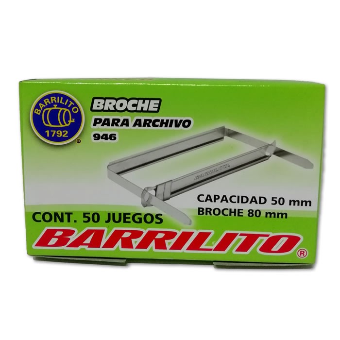 BROCHE PARA ARCHIVO 8 CM BARRILITO MODELO 946 CAJA CON 50 PIEZAS